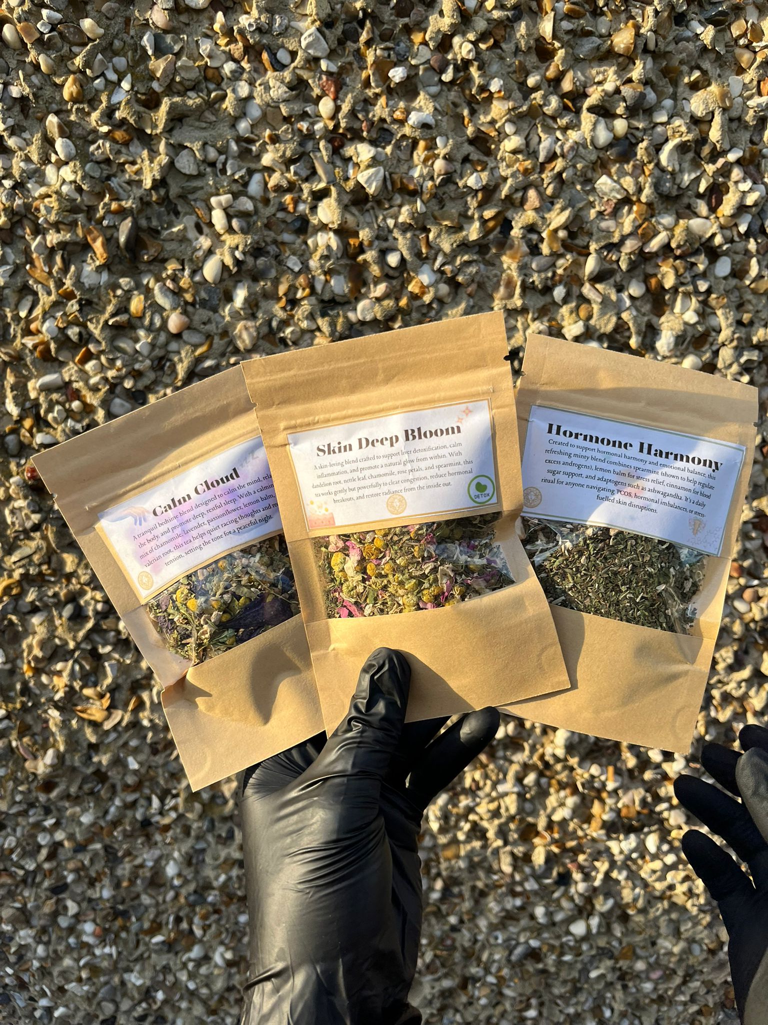 An introduction to our hand-blended herbal teas. This set features a curated selection of blends designed to calm, balance, and restore. The perfect way to discover your new favourite brew and experience wellness in every sip.
