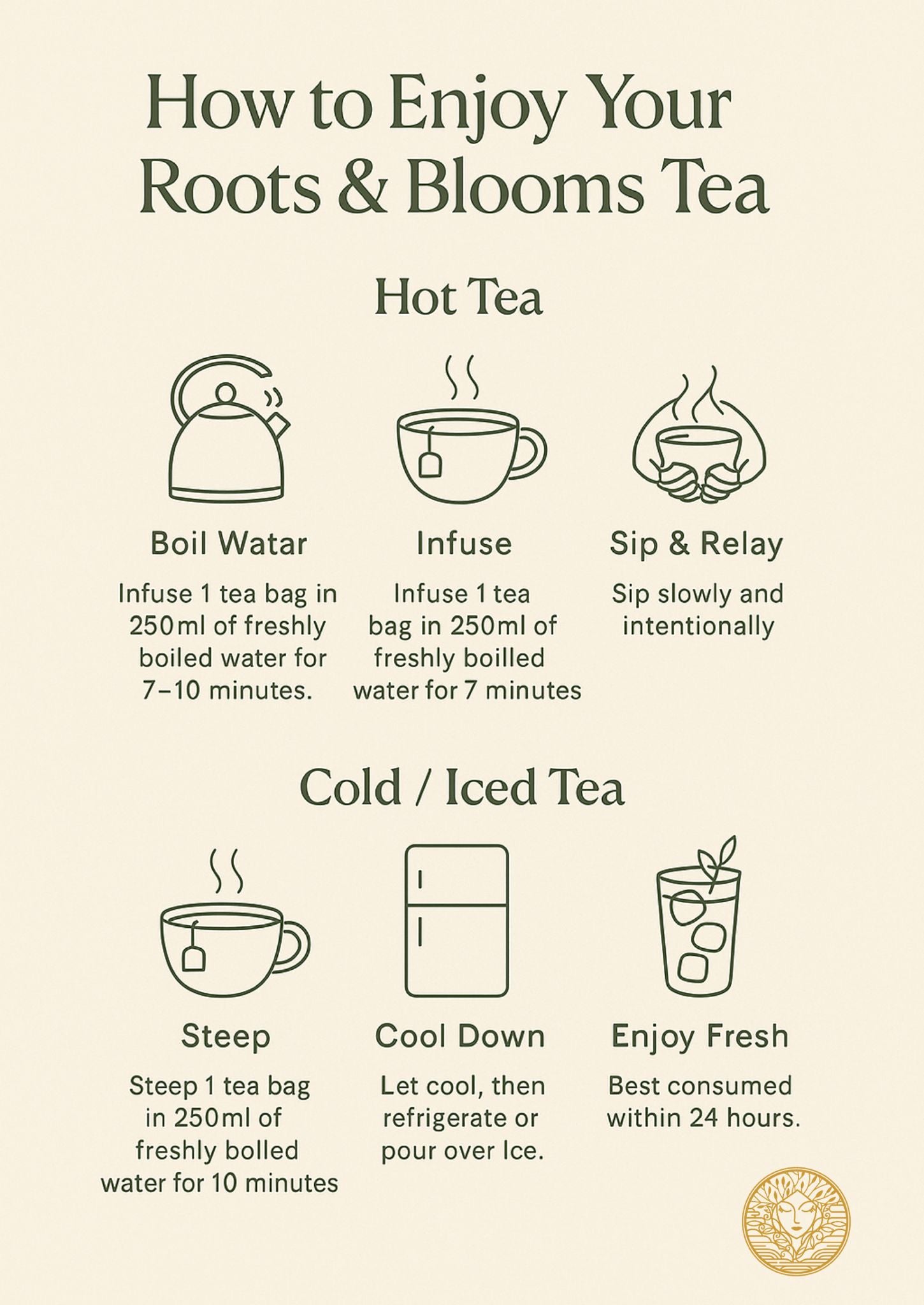 Chamomile – calming, gut-soothing •Rose Petals – anti-inflammatory, beautifying